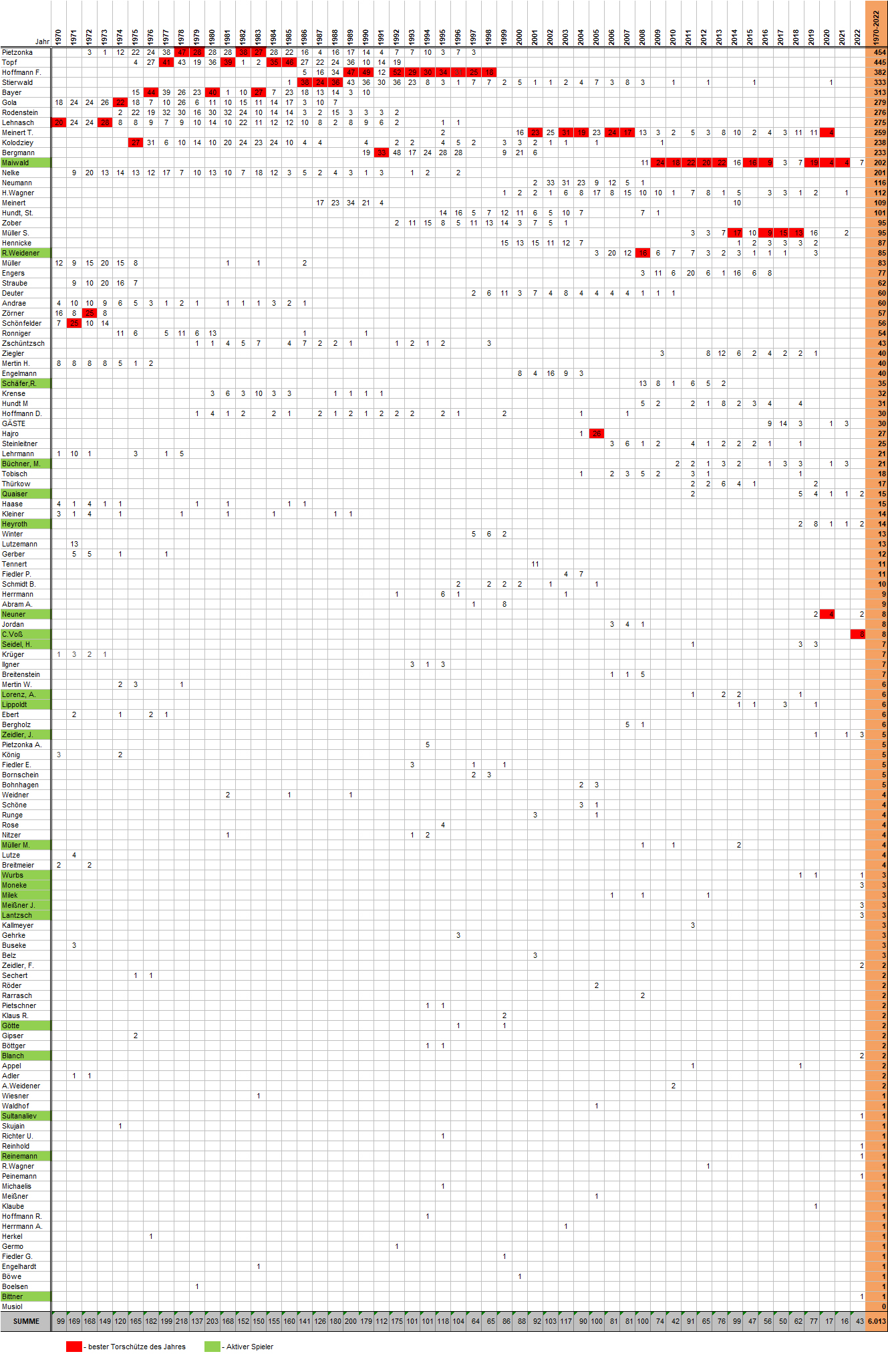 Tore Oldies 1970 bis 2022 (xlsx-Datei)