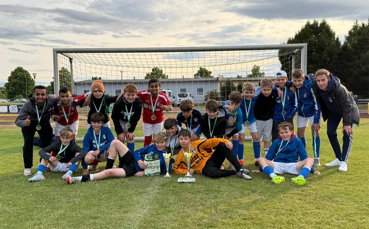 Das Pfingstwochenende ist traditionell auch Turnierwochenende. Von unseren Nachwuchskickern waren drei Mannschaften auf Turnierreise. Unsere C1-Jugend war auf verkleinertem Großfeld (ohne Abseits) auf der Südkampfbahn beim SV Eintracht Leipzig-Süd am Start. Nachdem in der Vorrunde denkbar knapp die Goldrunde verpasst wurde, stand am Ende der 8. Platz auf der Habenseite.