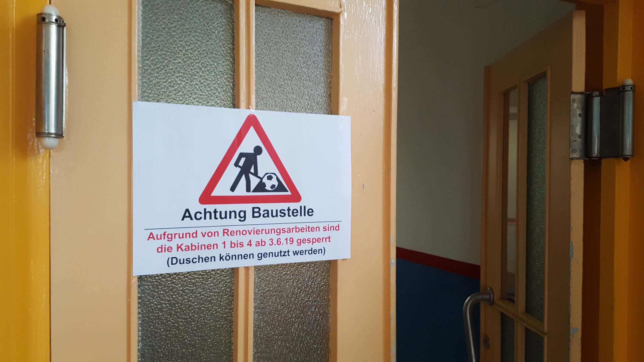 Am Montag hat mit dem Rückbau der Kabineneinrichtung die Renovierung des Traktes begonnen. Bereits am heutigen Mittwoch konnte somit die Metallbaufirma mit ihren Arbeiten beginnen. Die Spieler unserer Männermannschaften räumten, entrümpelten, demontierten am Montagabend und konnten gleich die Waschmaschinen im neuen Raum anschließen. Ein großes Dankeschön an alle freiwilligen Helfer! Vor allem danken wir auch dem GLOBUS-Markt in Halle-Bruckdorf und der Firma AIB Bechstein für ihre Unterstützung.