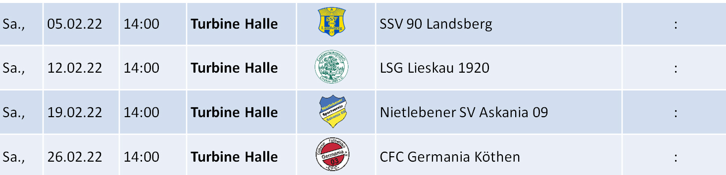 Ebenfalls am 5.2. empfängt Turbine II die SG Ramsin, bevor am 26.Februar das ausgefallene Spiel gegen den Roten Stern auf dem Programm steht.