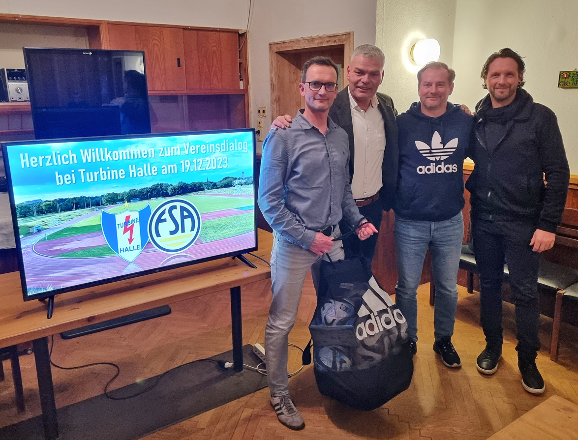 Der letzte Vereinsdialog des Jahres fand am Dienstagabend auf dem Felsen statt. Der FSA kam in großer Besetzung: Präsident Holger Stahlknecht wurde begleitet vom amtierenden Geschäftsführer Markus Scheibel, von Präsidiumsmitglied Jens Franke sowie von Ulf Buchmann (FSA-Vereinsberater Bereich Süd) und René Unger (Masterplan-Koordinator). Außerdem nahmen vom SFV Halle Präsident Thomas Paris und Sven Wunderlich (Vorsitzender Spielausschuss) teil. Turbine war fünfköpfig vertreten und hatte folgende Themen auf die Tagesordnung gesetzt, die bereits seit einiger Zeit einen Austausch erfordern: