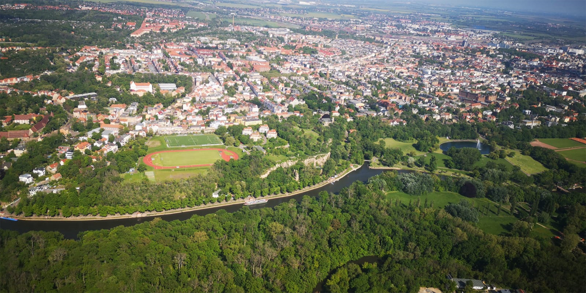 Dank eines zweimotorigen Überfluges können wir euch ganz neue Ansichten vom Felsen präsentieren. Eingebettet zwischen Saale und Giebichensteinviertel liegt der Lieblingsort mit seinen hell- und dunkelgrünen Plätzen. Ein Beweis mehr für die einzigartige Lage der Sportanlage. Ein Dankeschön geht an Itti von unseren Leichtathleten, der sich in die Luft geschwungen und uns die Bilder übermittelt hat.