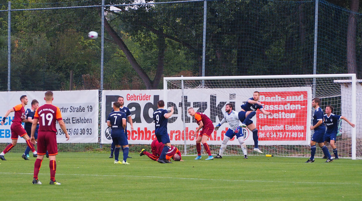 20 Minuten ließ es sich gut an im Städtischen Stadion des MSV Eisleben: Das Gewitter blieb aus, das Flutlicht war an und 100 Zuschauer wohnten dem zweiten Landesligaspiel bei. Turbine spielte kombinationssicher hinten heraus, hatte den Zugriff auf den Gegner und versuchte vor allem über die linke Seite offensiv durchzustarten. Was fehlte, war die entscheidende Durchschlagskraft. Das diese eher bei den Gastgebern liegen würde, deutete sich aber schnell an.
