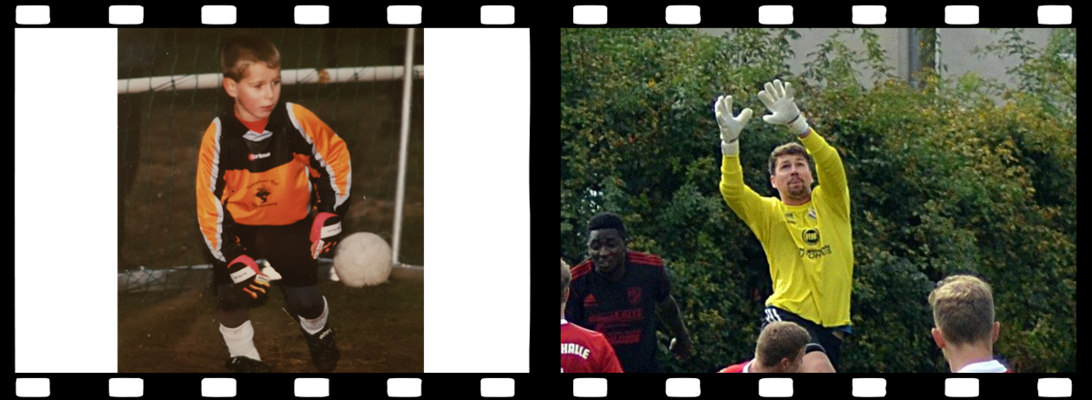 Etwas verunsichert wirkt der Griff ins kurze Haar, den Felix Martinowski im jungen Alter von 12 Jahren im Turbine-Trikot präsentiert. Vielleicht war auch die schiere Übermacht der Bundesligateams beim Opel-Mundt-Cup etwas aufregend. Mit etwas höherem Haaransatz heute, dafür aber mit breitem und selbstbewusstem Lächln präsentiert sich Felix in der Gegenwart mit unserer 2.Mannschaft.