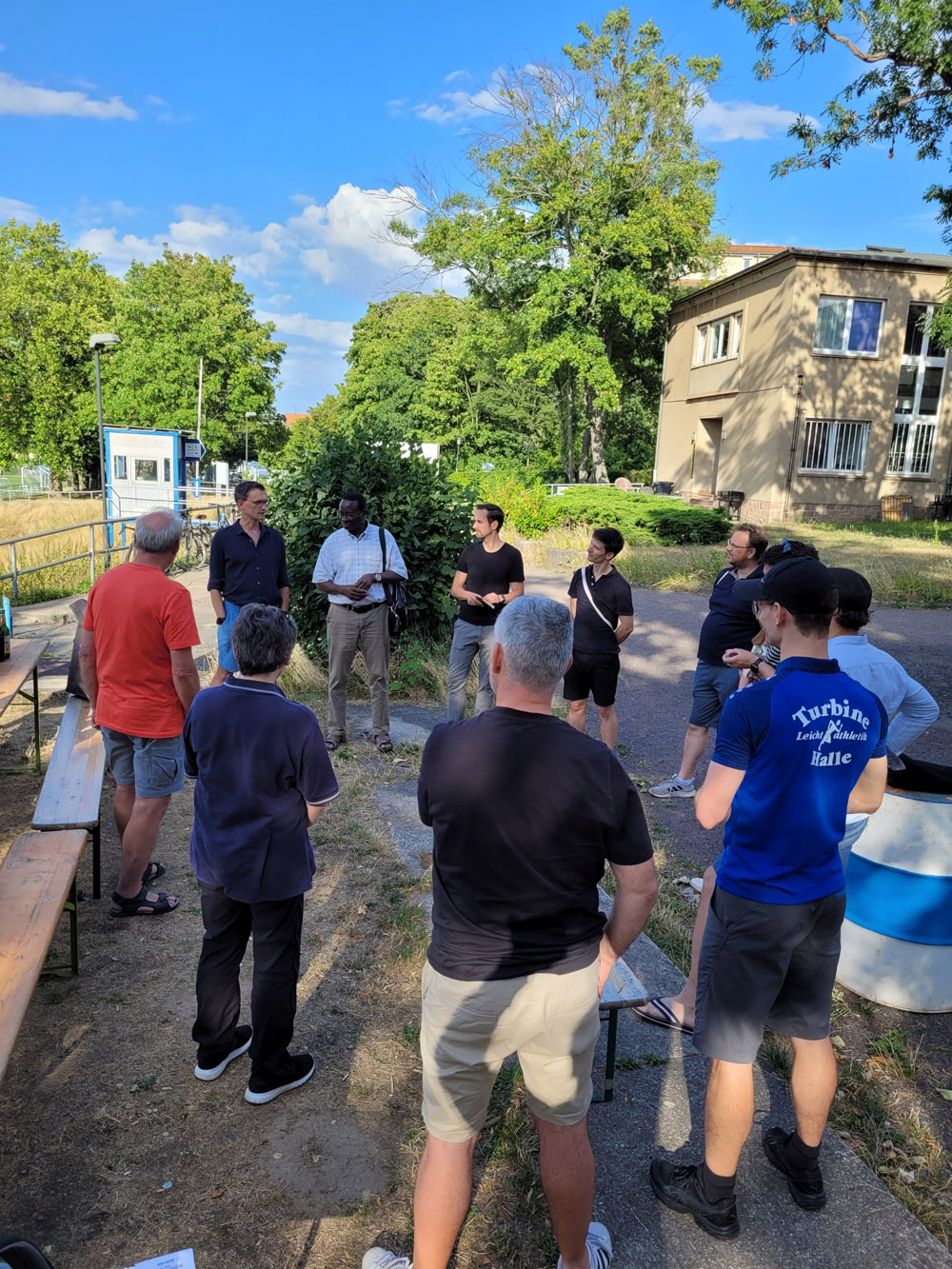 Hohen Besuch konnten wir gestern Abend auf dem Felsen empfangen. Dr. Karamba Diaby, unser Bundestagsabgeordneter für Halle, besuchte gemeinsam mit Vertretern und einer Vertreterin der SPD-Stadtratsfraktion unseren Verein. An der Felsenhütte kamen unsere Gäste mit Vertretern des Vereinsvorstandes über vielfältige Themen ins Gespräch, die nicht nur für Turbine, sondern auch für viele weitere Vereine stellvertretend diskutiert wurden. Vor allem die Gewinnung, Ausbildung und Förderung von Übungsleitern in allen Sportarten wurde als sehr wichtiges Thema besprochen. Hier wurde Karamba Diaby der Wunsch nach viel stärkerer finanzieller Unterstützung von Bund und Land mit auf den Weg gegeben. Mitgliederentwicklung, Bürokratie bei der Akquise von Fördergeldern, die größere Würdigung des Ehrenamtes und der Vereine, sowie die materielle und infrastrukturelle Ausstattung des Vereins waren weitere Punkte für einen Austausch.