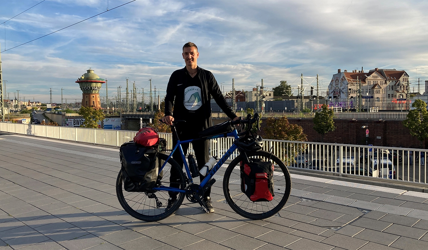 Michael Borst, seit dem Bambinialter bereits Felsenkicker und derzeit Akteur unserer 2.Mannschaft, hat für die nächsten Monate Fußballschuhe und Ball gegen Fahrrad und Satteltaschen getauscht. An sich nichts Ungewöhnliches, doch Micha hat sich auf eine 3.000 km lange Spendentour von München nach Athen begeben. Bis November fährt er für die Zeltschule e.V., um über 'erradelte' Kilometer Gelder für Schulbauten in Flüchtlingslagern in Syrien und im Libanon zu sammeln.