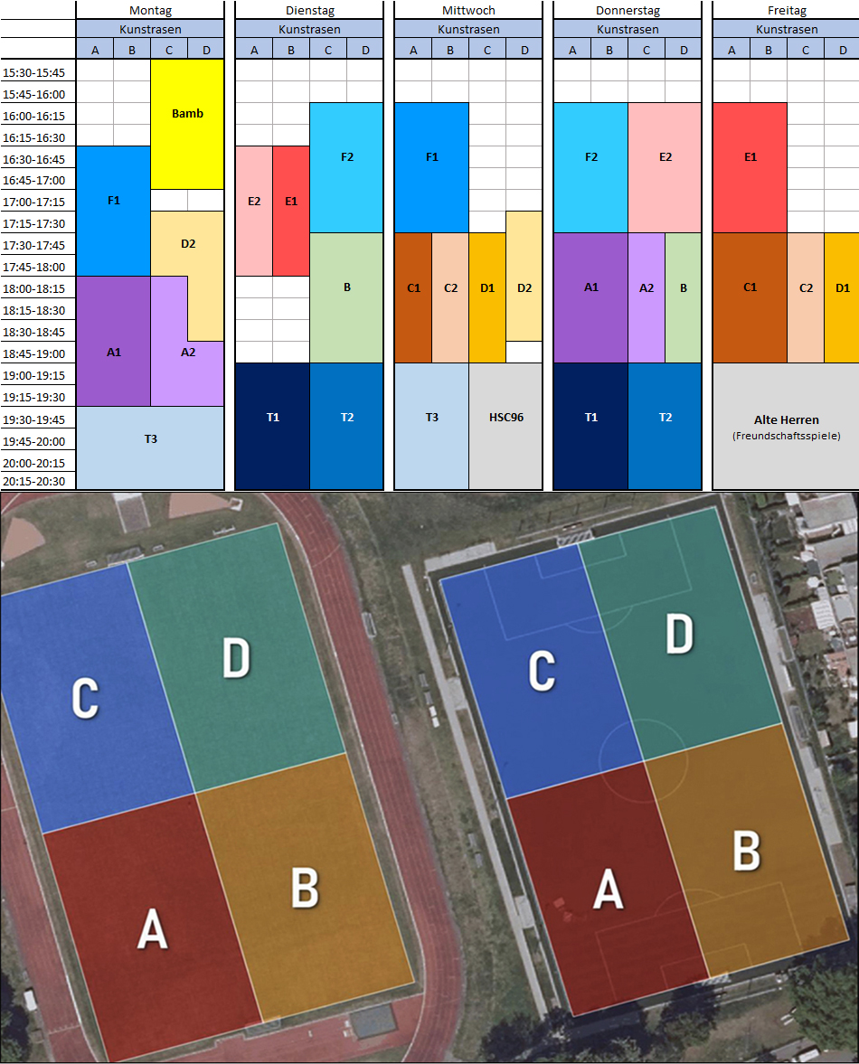 Trainingszeiten und Platzbelegung (Turbine-Sportplatz)